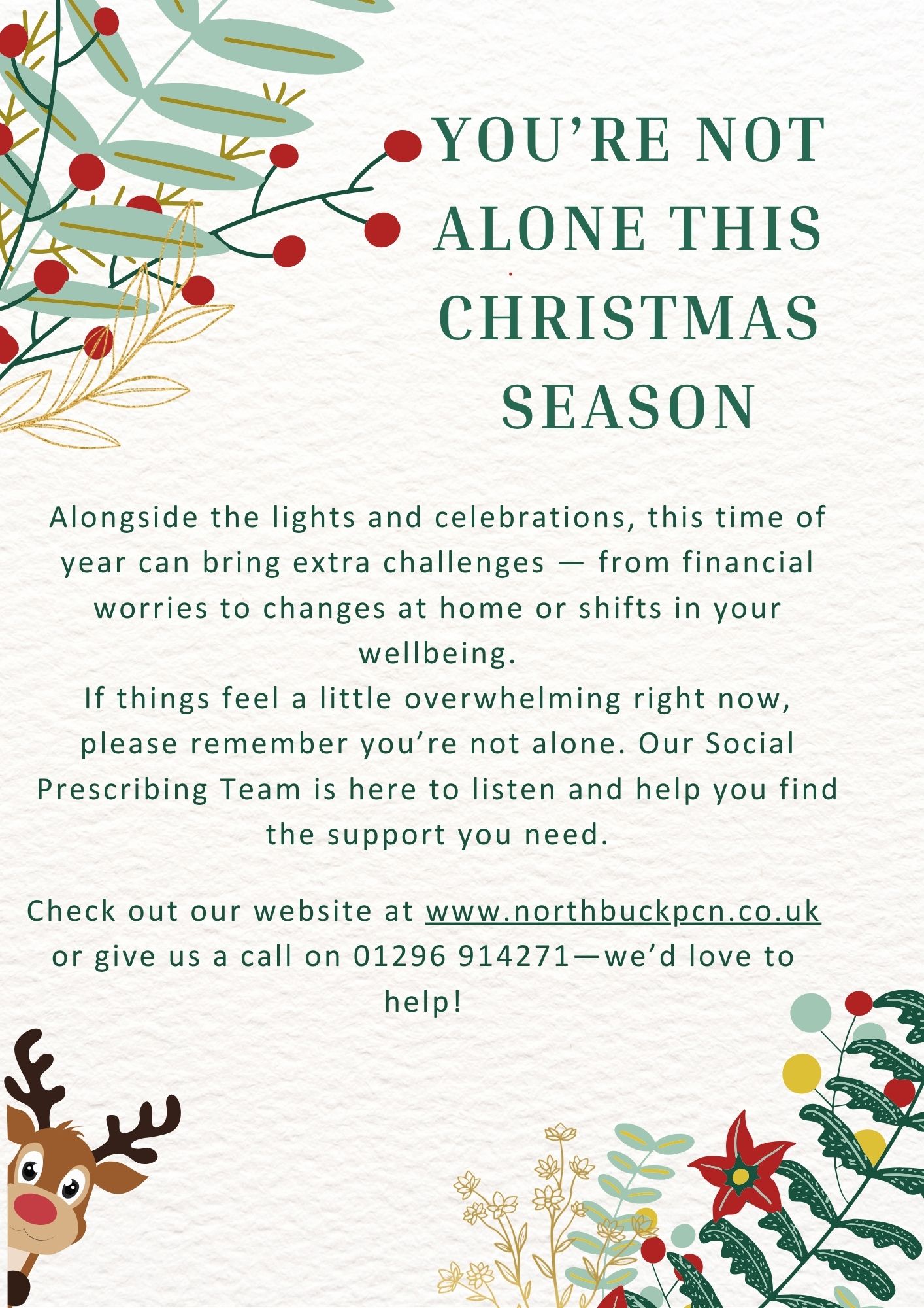 You’re not alone this Christmas season our Patient Support Service are here to support you……..